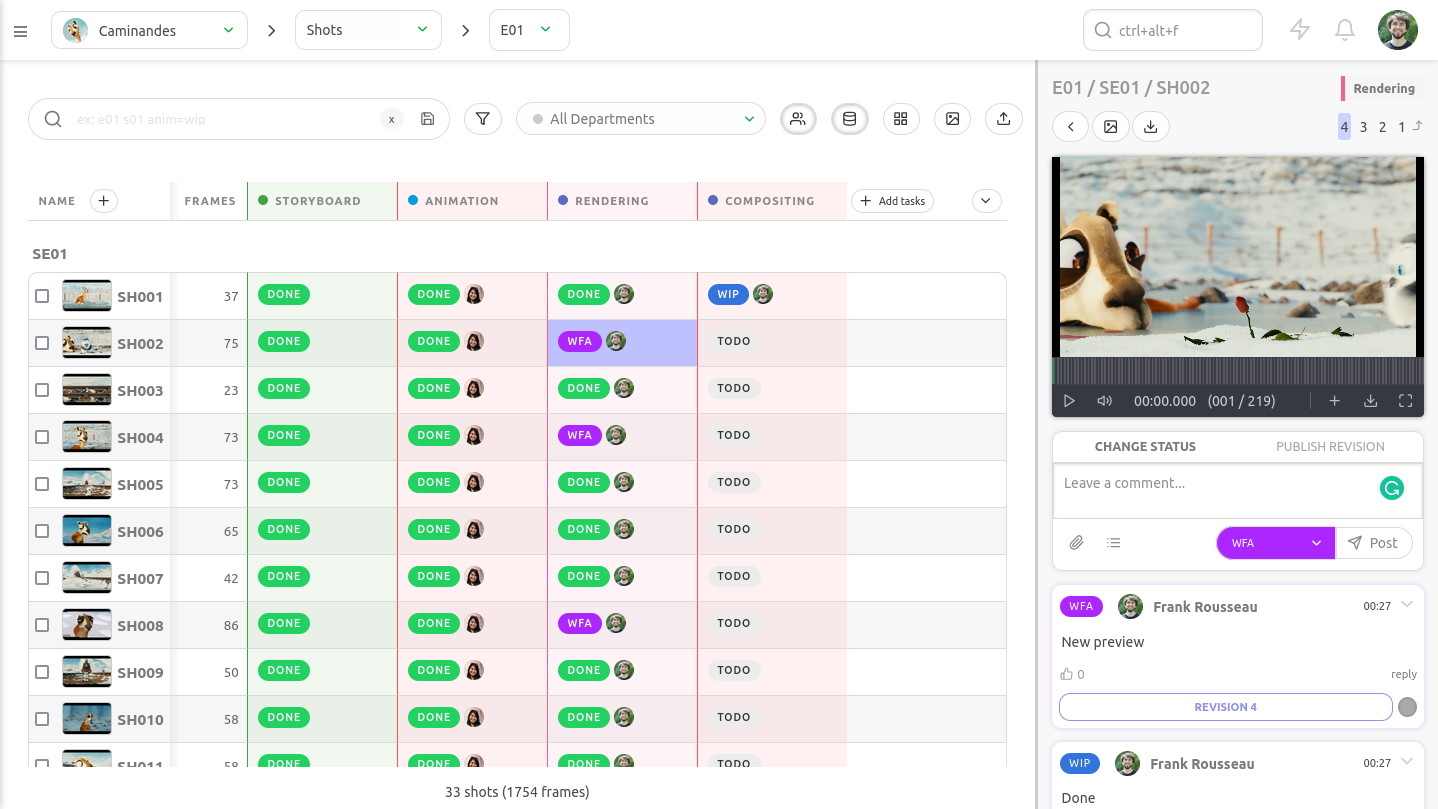CGWire develops Kitsu, a platform for animation, VFX, and video game studios that brings teams and tools together in a single place. Collaborate, manage deliveries, and perform reviews from anywhere.