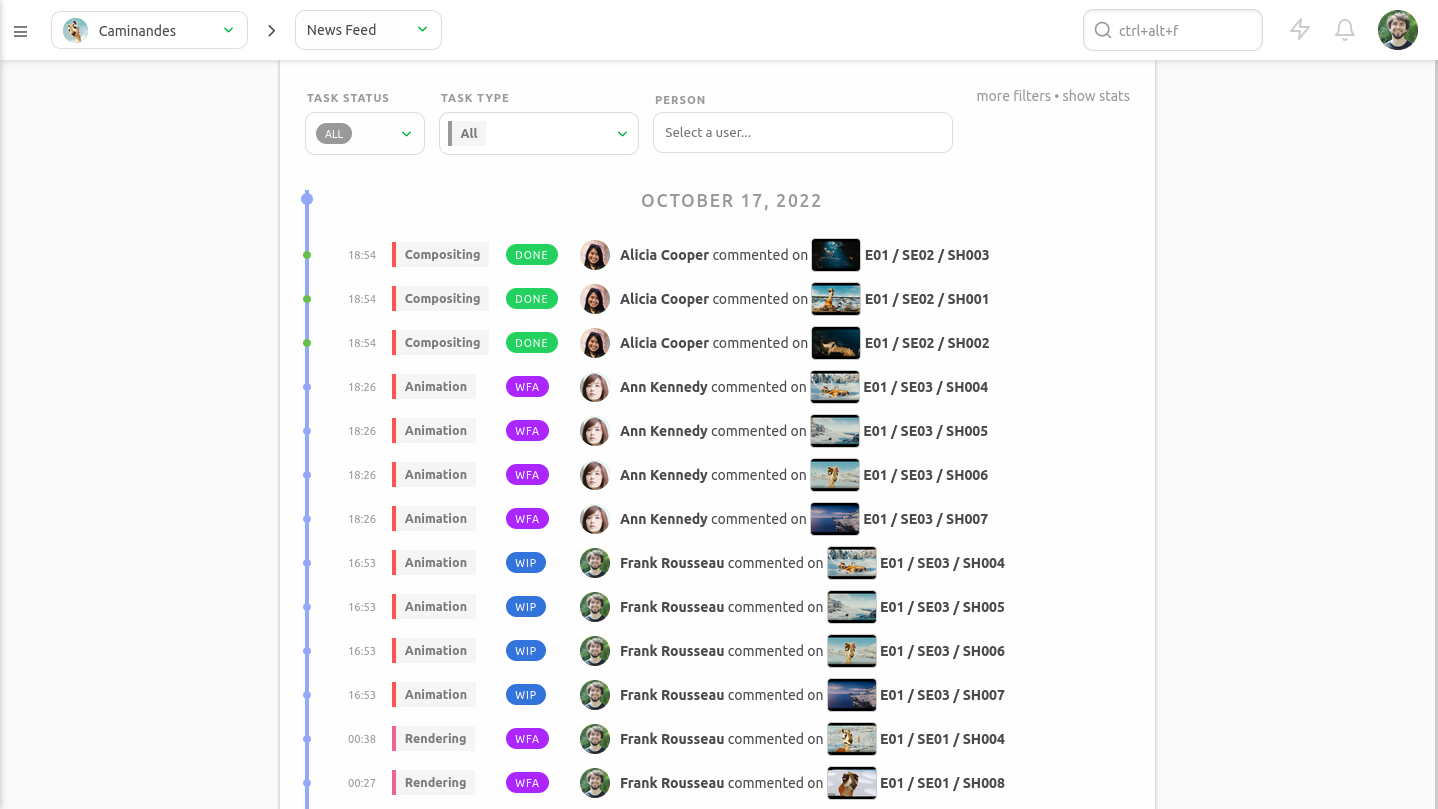 Thanks to the news feed, you will never miss any comments or new previews. Everyone in the studio stays informed about ongoing activities, making it easier to anticipate problems.